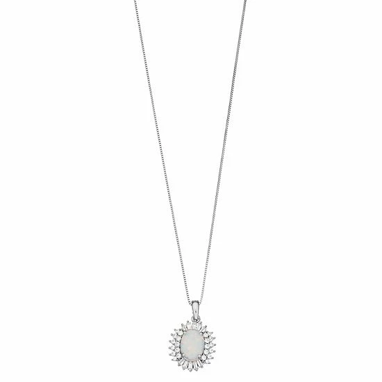 Add a scintillating touch to your ensembles when you wear this eye-catching, lab-created white opal and lab-created white sapphire oval pendant necklace.