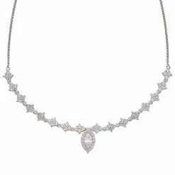 Dazzling with lab-created white sapphire stones, this sterling silver statement necklace offers sophisticated style.
