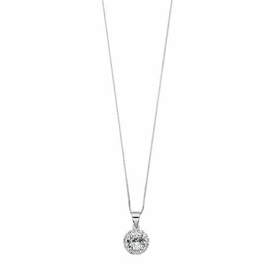 Sophisticated style abounds with this beautiful lab-created white sapphire halo pendant.
