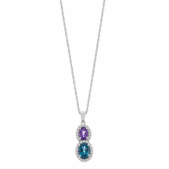 - Stone type: London blue topaz, amethyst, lab-created white sapphire