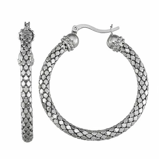 Complete your fashionable look with the eye-catching style of these sterling silver mesh hoop earrings.