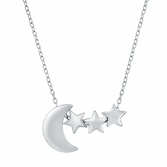 Accessorize in style with this charming moon and stars pendant necklace on a sturdy sterling silver cable chain.