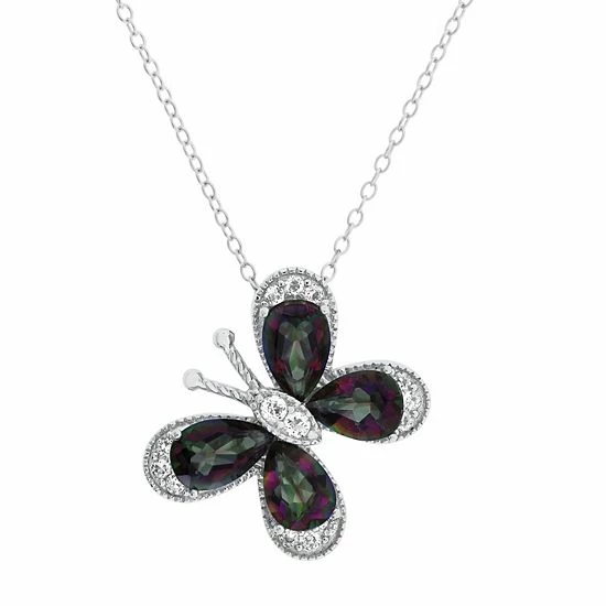 Featuring pear-cut, multicolored quartz gemstones set in a butterfly motif, this sterling silver butterfly necklace accents your look beautifully.