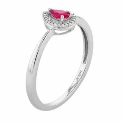Featuring a stunning ruby center stone haloed by diamond accents, this ring is sure to impress.