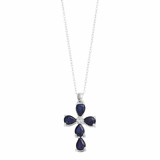 Display your faith in a beautiful way with this sterling silver sapphire cross necklace.
