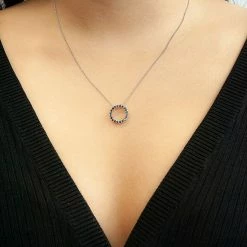 Decorated with beautiful blue sapphires, this open circle pendant offers a luxurious look.