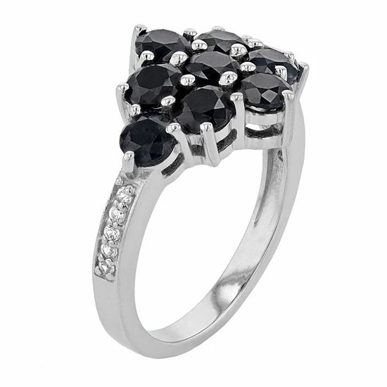Created with beautiful blue sapphires and white zircon accents, this sterling silver pyramid ring offers a luxurious look.