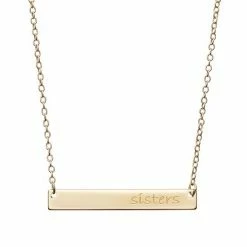 Featuring a polished sterling silver bar decorated with a “sisters” engraving, this necklace is a lovely tribute to your sis.