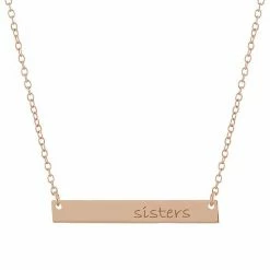 Featuring a polished sterling silver bar decorated with a “sisters” engraving, this necklace is a lovely tribute to your sis.