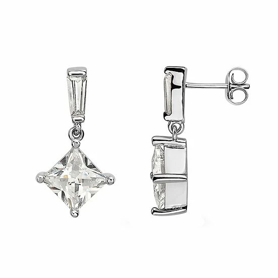 These stunning sterling silver square cubic zirconia drop earrings are the perfect way to finish your favorite outfits.