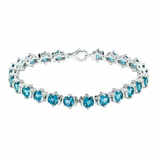 Round-cut Swiss blue topaz gemstones give this sterling silver bracelet unmatched color and sparkle.