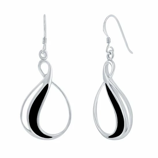 Inlaid stones lend eye-catching style to these sterling silver teardrop earrings.