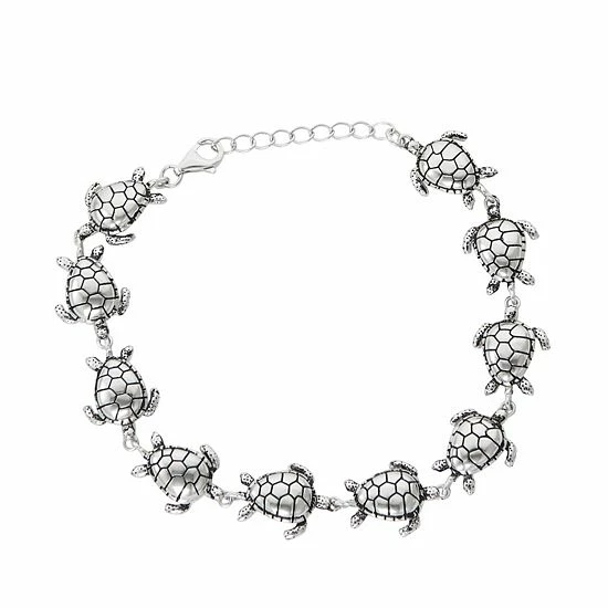 Add a fun touch to your casual attire with this sterling silver sea turtle bracelet.