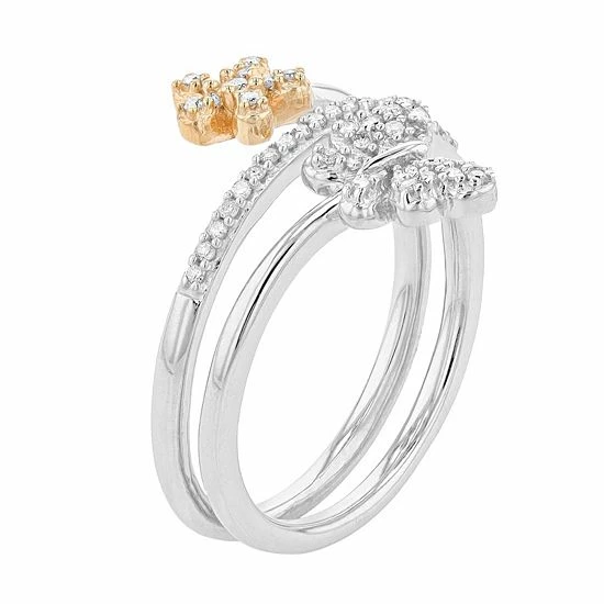 You’re sure to love the charming style of this sterling silver two tone butterfly and flower ring.