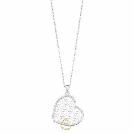 Decorated with a open-worked heart pattern, this two-tone double heart pendant offers a distinctive look you’ll love.