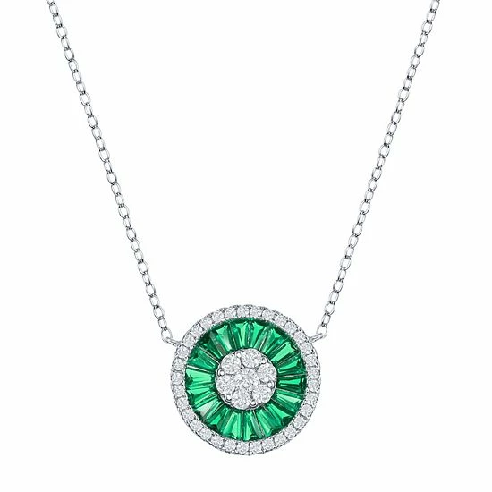 You’re sure to enchant time and time again whenever you wear this captivating green and white cubic zirconia circle pendant necklace.