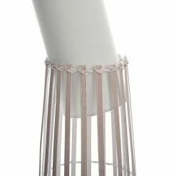 Instantly refresh your space with this Tall White Fabric Inside Shade with Rattan Outer Shade Uplight.