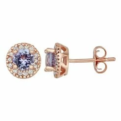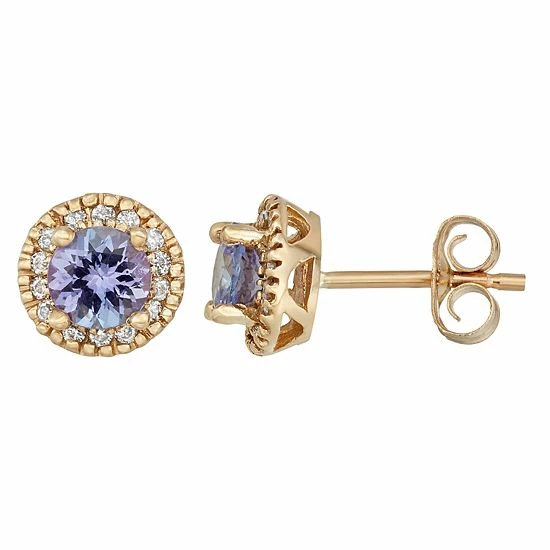 Featuring shimmering Tanzanite center stones accented by round-cut diamonds, these 14k gold stud earrings elevate any ensemble.