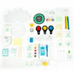 - 3 Tie Dye Bottles 0.09fl oz each, 3 Color Wands, 1 Stamp Pad, 2 Phosphorescent Powder Packets 0.017oz each, 2-Expanding Water Sphere Packets 0.035oz each, 3 Test Tubes, 3 Plastic Containers, 8- Plastic Straws, PVA Glue 1.35fl oz, Safety Goggles, 1 Decoder Wheel, Liquid Bubbles 3.38fl oz , 1 Poster, Easy-to-Follow Instructions