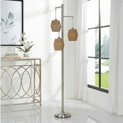 Create an eye-catching focal point in any room with this three hanging shades floor lamp.