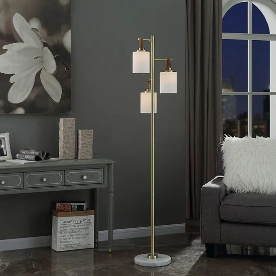 Instantly refresh your space with this Three Sphere Shades Hanging from Brass Frame with Marble Base .