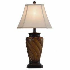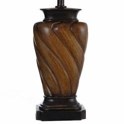 This shiny toffee wood finish table lamp will be the perfect addition to your home.