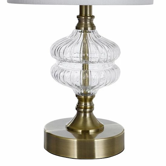 Instantly refresh your space with this Traditional Satin Brass Table Lamp with Clear Glass Fluted Body.
