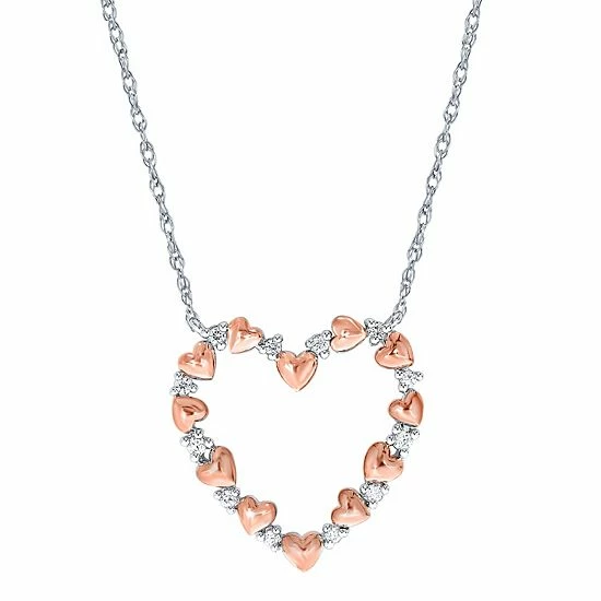 Featuring a two-tone heart pendant enhanced with shimmering diamonds, this necklace offers an enchanting look.