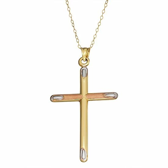 Celebrate your faith in a lovely way with this two-tone 10k gold cross necklace.