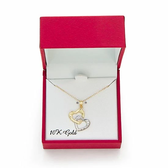 Featuring a pair of interlocking hearts, this two-tone 10k gold necklace is a sweet accent to your ensembles.