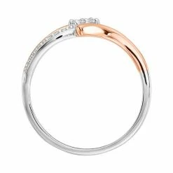 Featuring a pair of diamond center stones nestled within a bypass stylish two-tone setting, this 14k white gold ring is simply stunning.