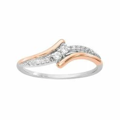 Featuring a pair of diamond center stones nestled within a bypass stylish two-tone setting, this 14k white gold ring is simply stunning.