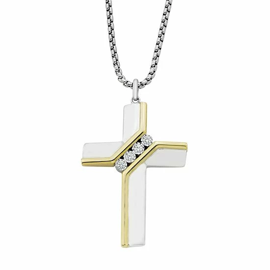 Show your devotion when you wear this unique two-tone sterling silver cross pendant.