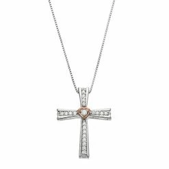 Shimmering round-cut diamonds and a heart detail make this cross pendant a heavenly choice.
