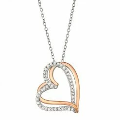 Featuring a pair of interlocking hearts accented with diamonds, this two-tone sterling silver pendant necklace is a sweet complement to your ensembles.