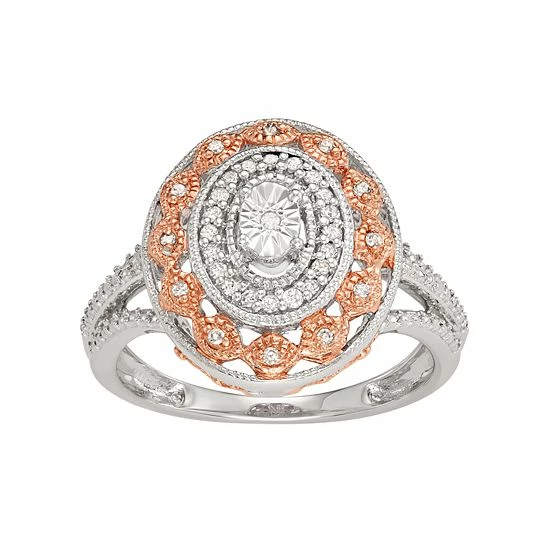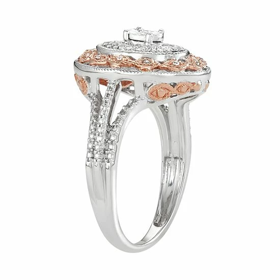 Adorned with a miracle-set center stone, and accentuated with pink rhodium details, this sterling silver halo ring enhances your look in a beautiful way.