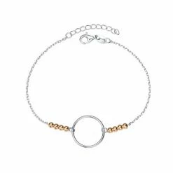 Made from sterling silver, and decorated with 18k rose gold-plated beads, this circle link bracelet is a simple, yet elegant accent to your wardrobe.