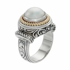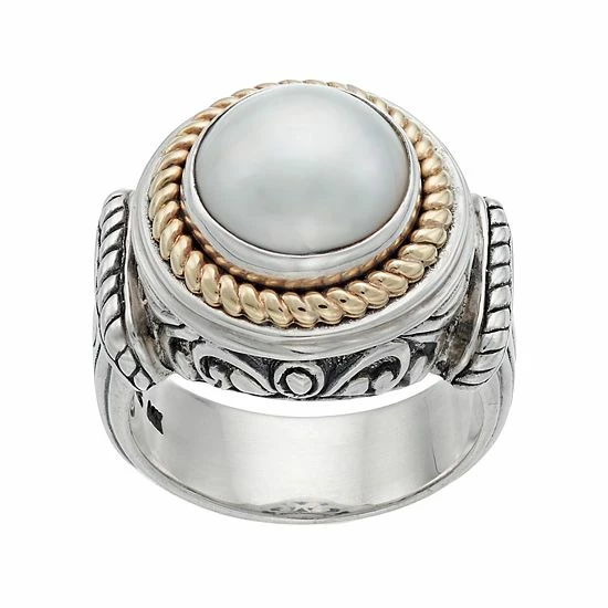 Decorated with a mabe freshwater cultured pearl, and rope and filigree details, this two-tone halo ring is sure to garner compliments.
