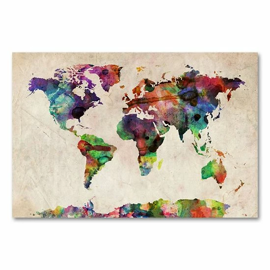 Map out your decor with this colorful wall art by Michael Tompsett.