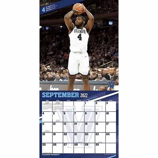 Every day is a good day to be part of the Villanova Wildcats family. This 2023 Team wall calendar is the ultimate fan’s way to keep track of things to do. With a daily dose of action-packed images from the Villanova Wildcats, this calendar ensures you’re taking on the day prepared and full of team spirit.