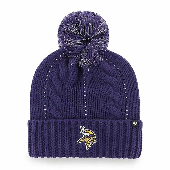 The cable design on this ’47 Bauble hat adds a stylish touch to your Minnesota Vikings outfit. The stretchy, knit design allows for the perfect amount of warmth and a full coverage fit. Plus, the Minnesota Vikings embroidery on the cuff and fun pom on top give extra charm to your game day getup.