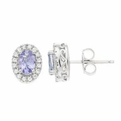 Add some color to your look by wearing these Women’s 6mmX4mm Oval Genuine Tanzanite With White Topaz Halo in Sterling Silver Earrings.
