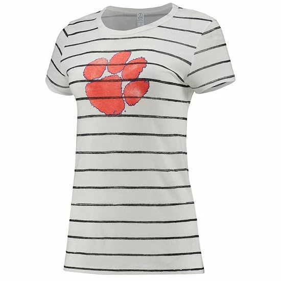 Illustrate your lifelong loyalty to the Clemson Tigers with this Ideal Stripe T-shirt from Alternative Apparel. It features Clemson Tigers graphics printed in a vintage design and emphasized by the sublimated stripes. The tri-blend material also gives this tee a super-soft feel.