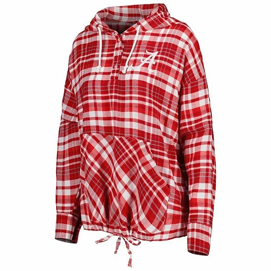 Showcase your passion for the Alabama Crimson Tide by making this Mainstay pullover hoodie from Concepts Sport part of your rotation. It features a team-colored plaid pattern, which allows the embroidered Alabama Crimson Tide crest to pop out and make a statement about your fandom. The adjustable hem and cuffs, three-button placket and dropped shoulders combine to make this lightweight top the most stylish option you have in your closet for representing your favorite squad.