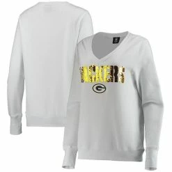 Let your love for the Green Bay Packers shine with this Victory V-neck sweatshirt from Cuce. It features the team name in dazzling sequin details alongside the iconic logo. Crafted with soft fleece lining, this pullover keeps you feeling extra cozy as you cheer on the Green Bay Packers.