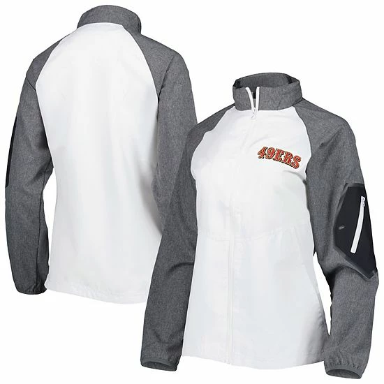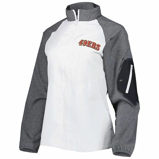 For coverage, style and ease of wear, sport this San Francisco 49ers Hurricane windbreaker by Dunbrooke. Raglan sleeves allow for a natural range of motion, and the lightweight design is perfect for resisting wind and moisture. Plus, the subtle yet striking San Francisco 49ers graphics complete this full-zip for a distinct piece of fan gear.