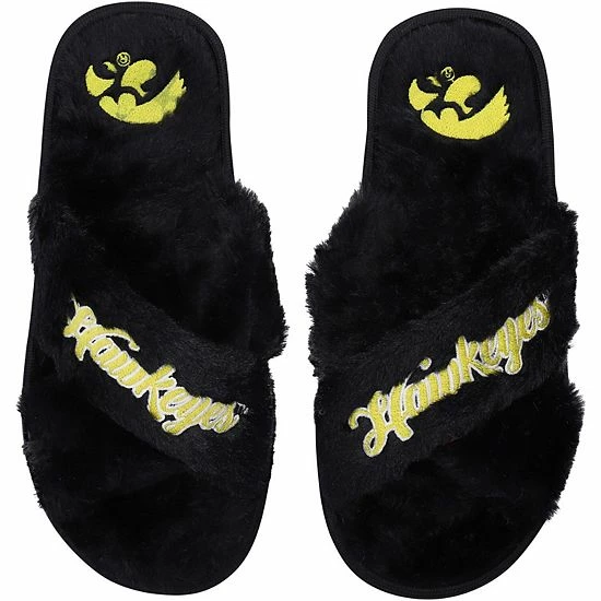 Kick your feet up and relax during the Iowa Hawkeyes game with these Script Cross slide slippers from FOCO. Made with soft faux fur with a textured bottom, these slippers are perfect for comfortably enjoying the game from home. Not to mention their embroidered graphics and team colors help you show your continued support of the Iowa Hawkeyes.