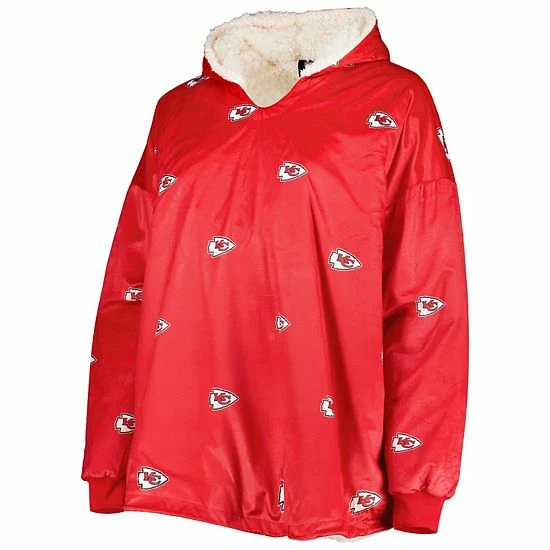 Take comfort to the next level with this Kansas City Chiefs Repeat Print hoodeez from FOCO. This oversized reversible hoodie features a bold allover design on one side and a prominent logo on the other. Stay warm and cozy during the next Kansas City Chiefs game with the soft Sherpa lining.