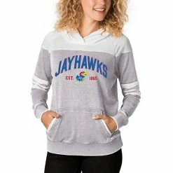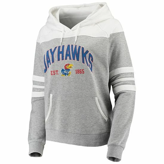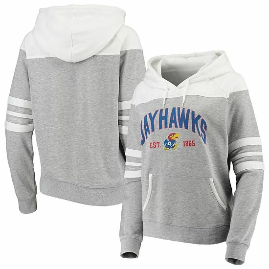 Pick up this Kansas Jayhawks Blitz Sleeve Striped Blocked raglan hoodie to prove that your team spirit never wavers, even in colder weather.