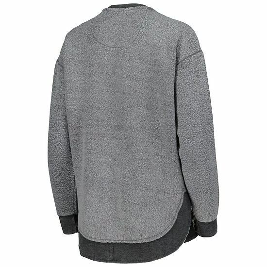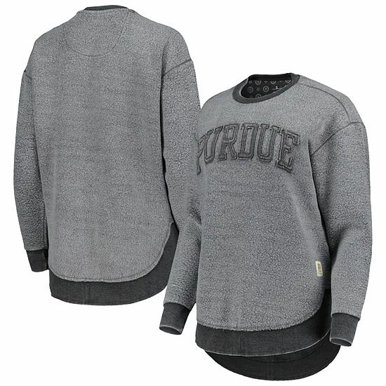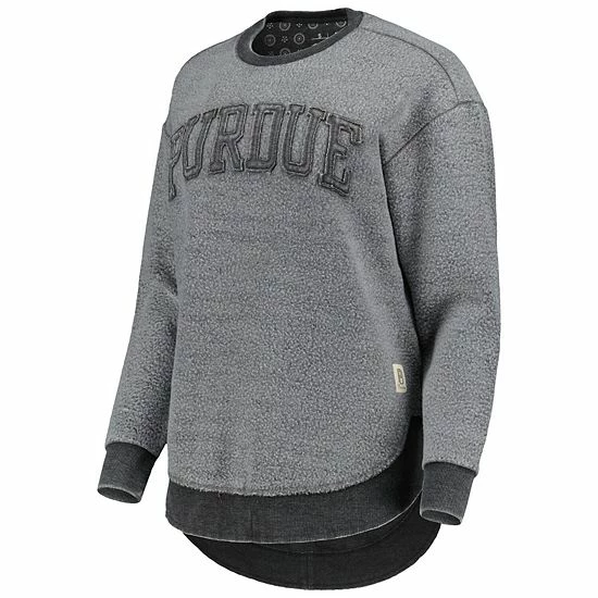Rock vintage style on cooler days with this Purdue Boilermakers Ponchoville sweatshirt from Pressbox. The washed-out fabric and raw edging on the stitched appliques give it an antique look that symbolizes your timeless dedication to the Purdue Boilermakers. The rounded droptail hem also adds a little extra coverage to this soft pullover for more warmth.
